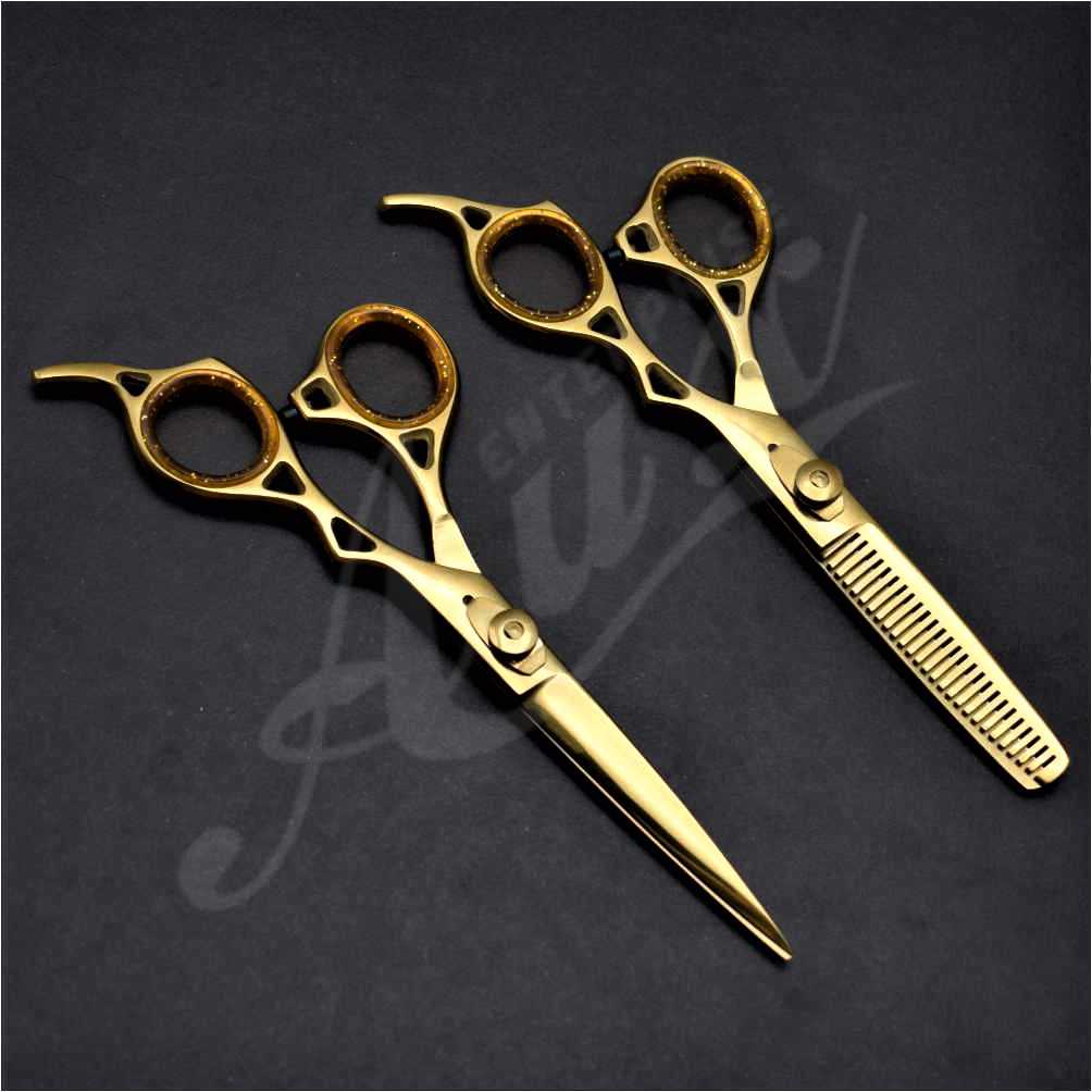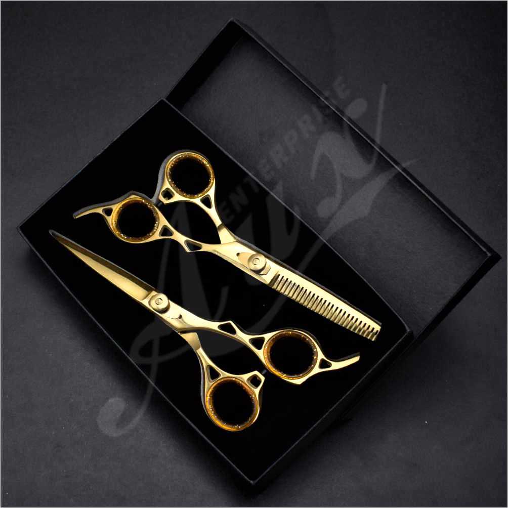 Shears Set in Gold Color for professionals, a Set of Barber and Thinning Scissors that you will enjoy using.